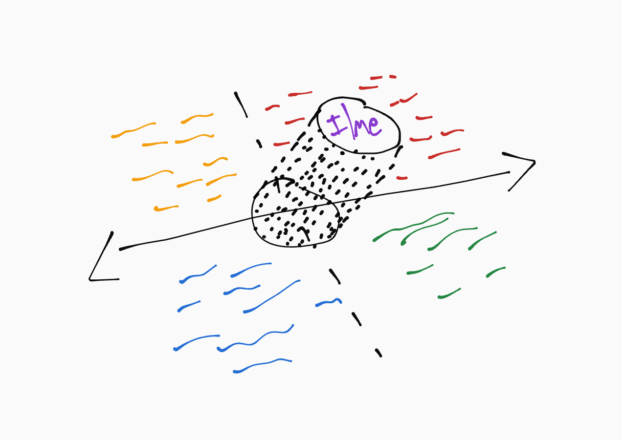 I’ve said before that I view the ACT Matrix as a “spatial relational tool” meaning that it helps us derive spatial reference points for our experience, which in turn helps us sort our experience in a different, more flexible way. In addition to this spatial relating, the matrix promotes relating to our experience in a variety of different ways.